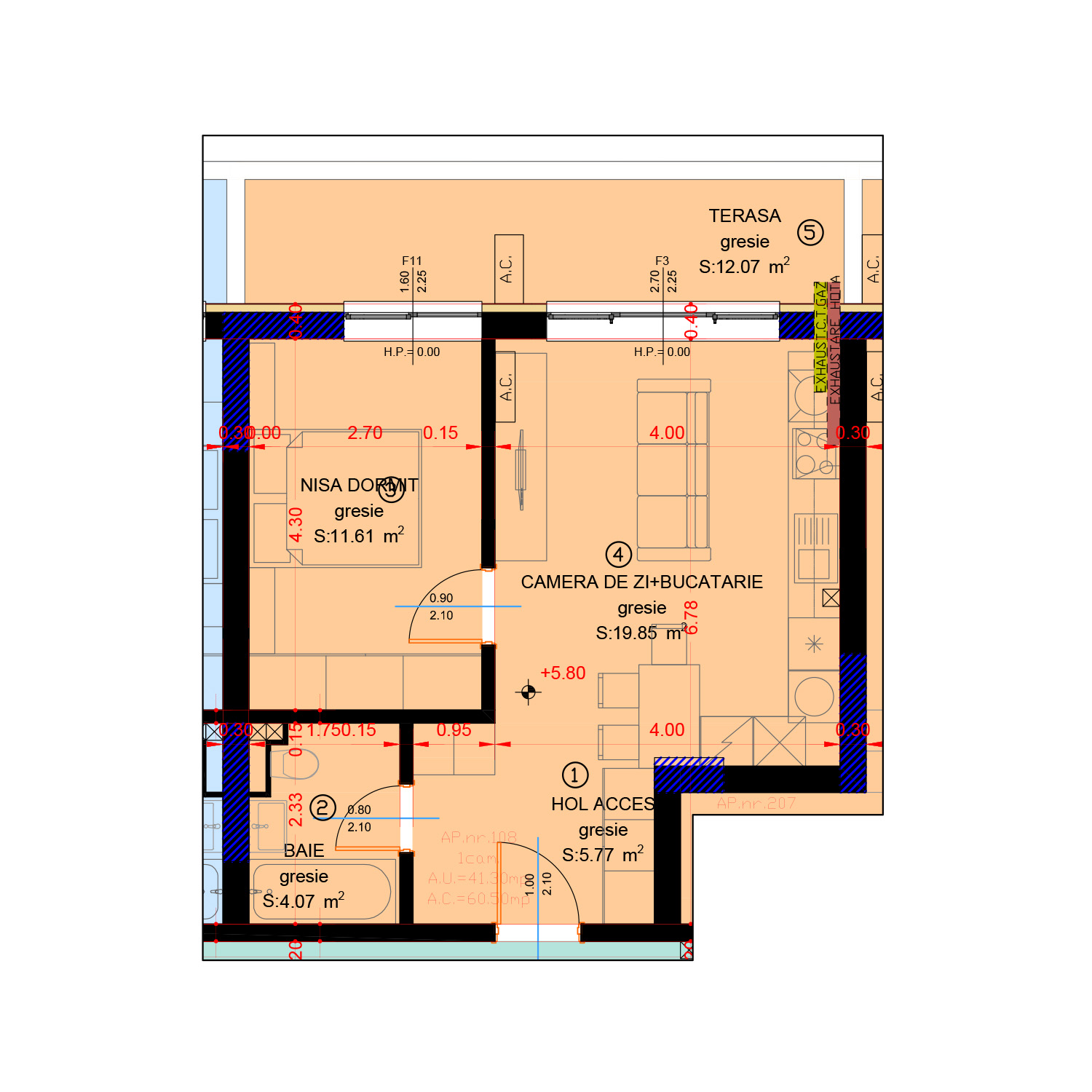 Suprafață utilă 41.30 mp · Suprafață totală 53.37 mp